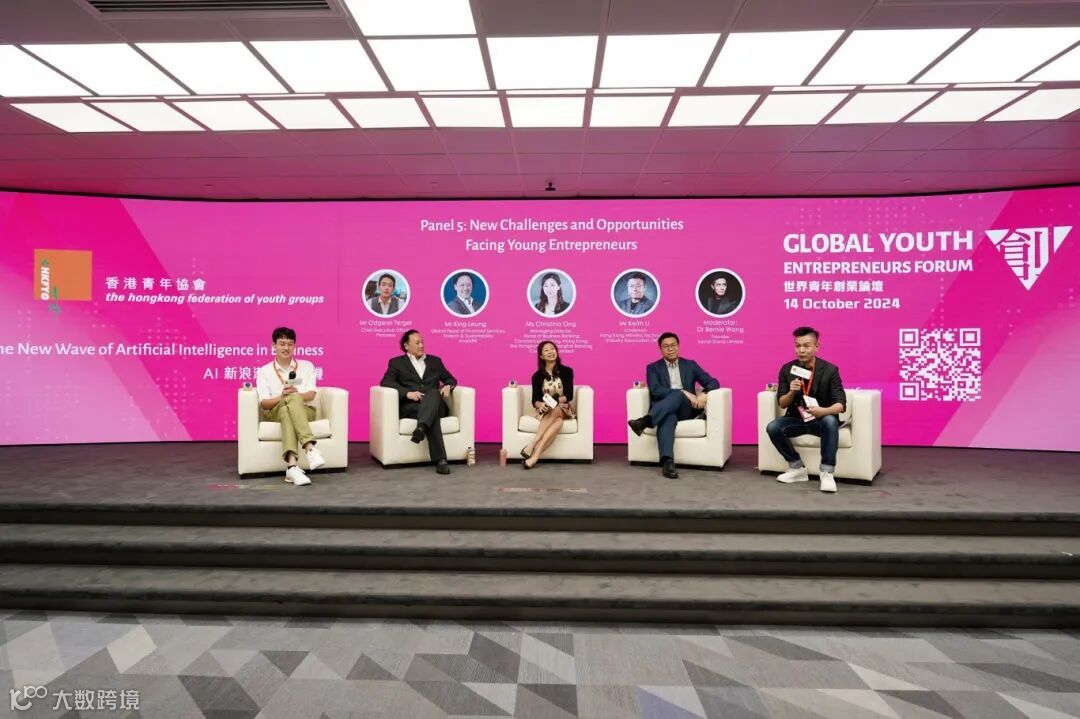 论坛共设5场专题分享,主题分别是《AI革命下的新商机:揭秘未来最具潜力的创业领域》《AI创业者的智慧未来:融入AI技术的青年创业之道》《促进青年创业与共融:女性青年创业家如何面对新挑战》《传统行业中的AI赋能》及《AI与互动技术如何提升营销效率》。
