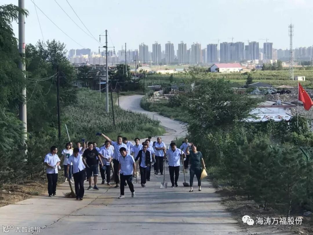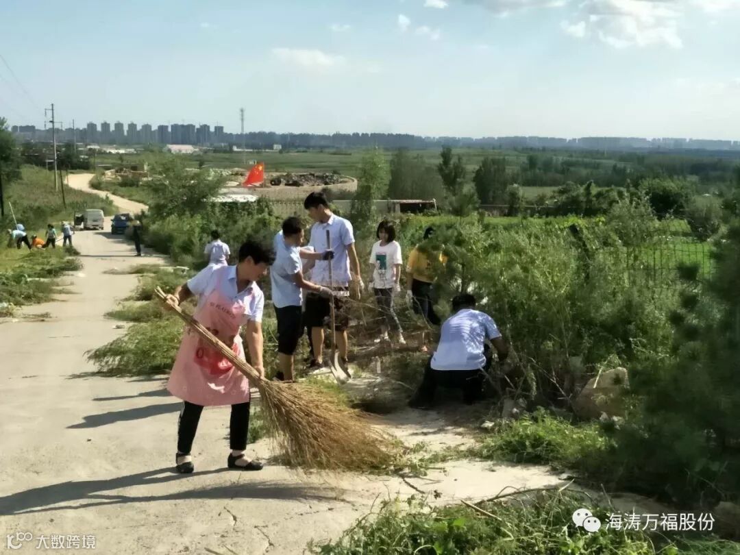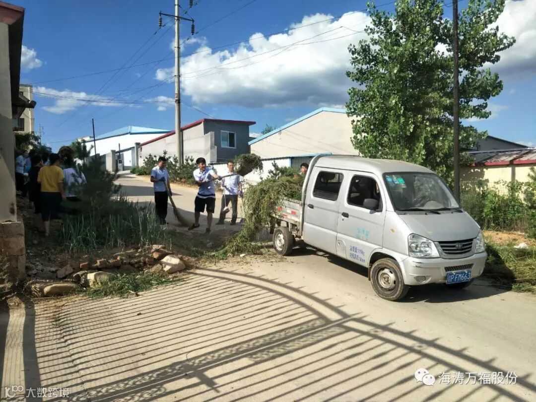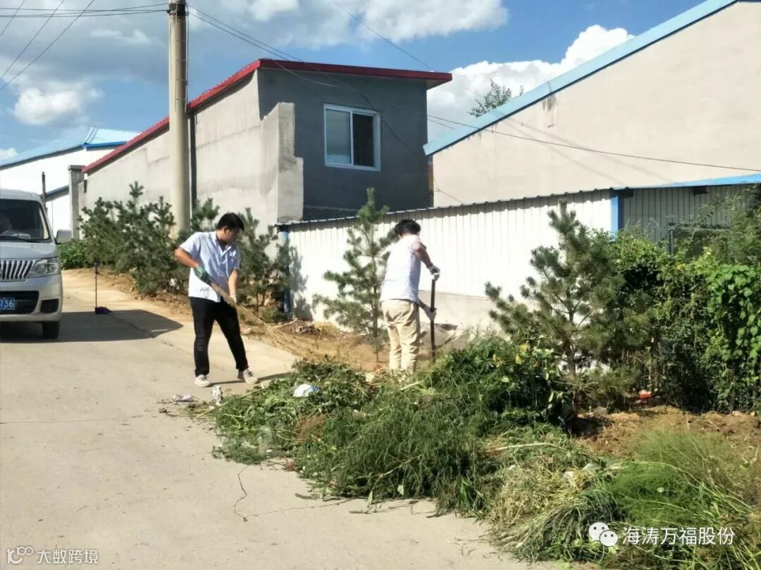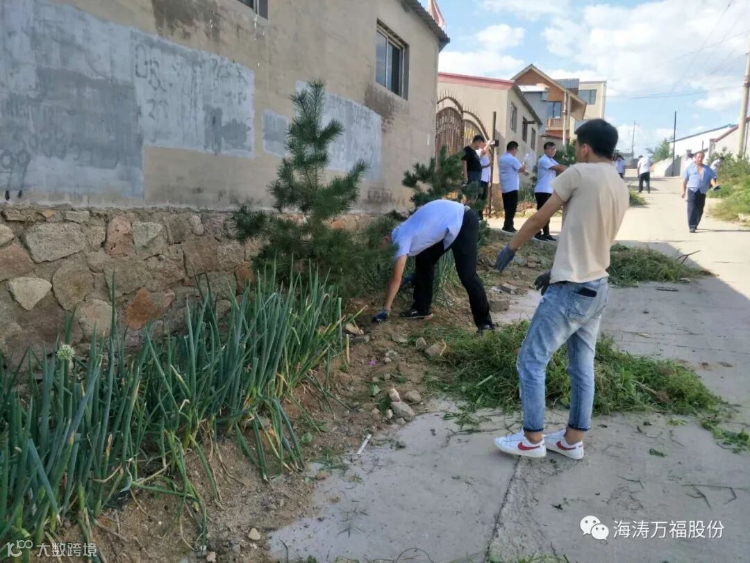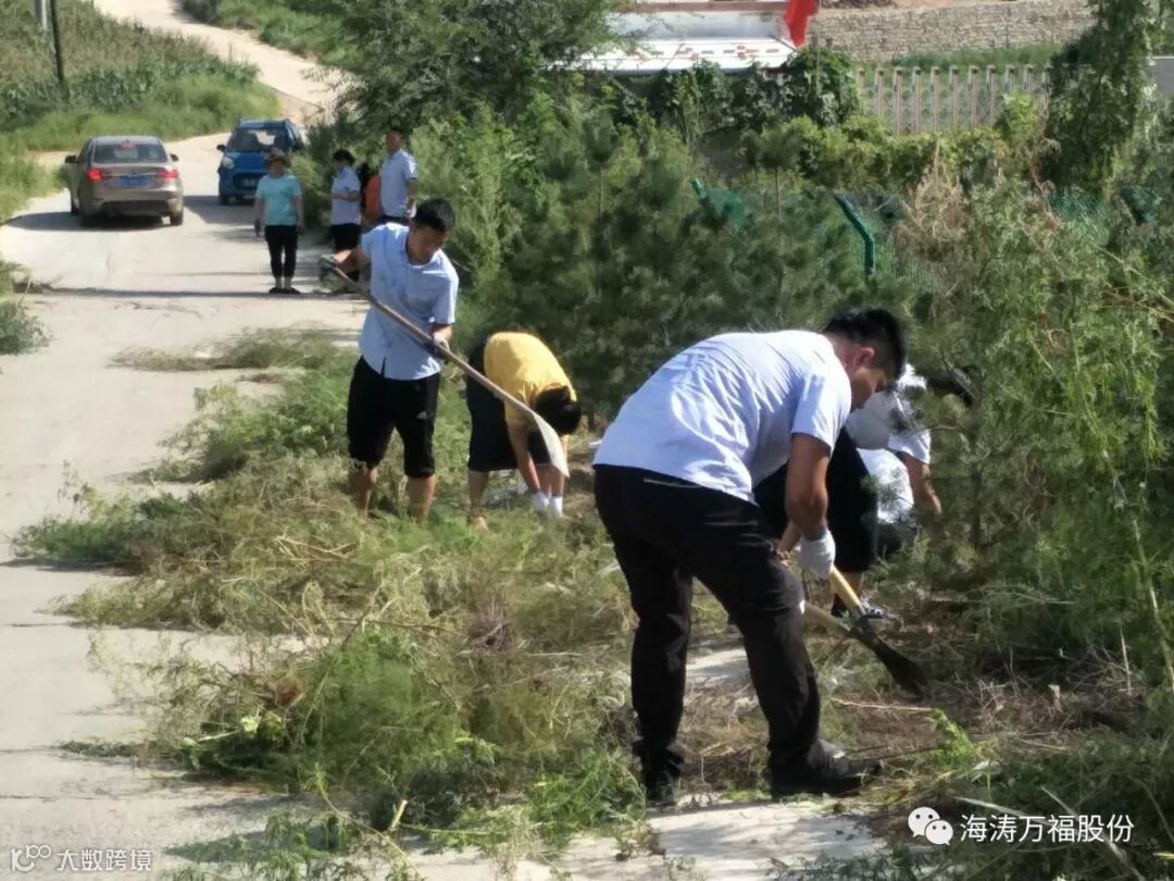 海涛集团党支部组织各部门员工到公司大门前两侧清理垃圾和杂草。