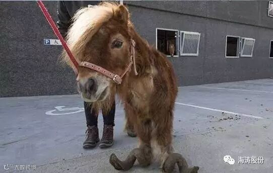 据了解,一般的马匹,每隔几周时间就要修剪一次马蹄,而这匹小马的马蹄十年未剪刀,多余的蹄子已经严重扭曲变形,并为它的行走带来了不便。