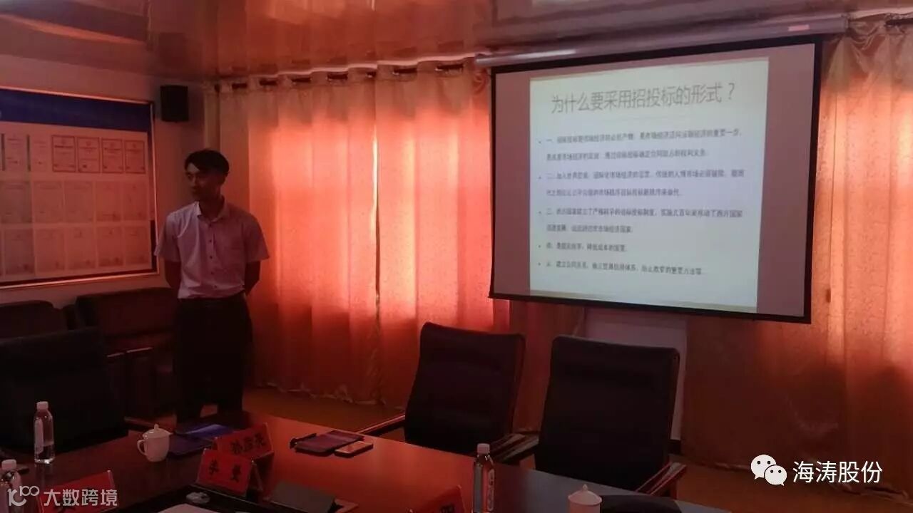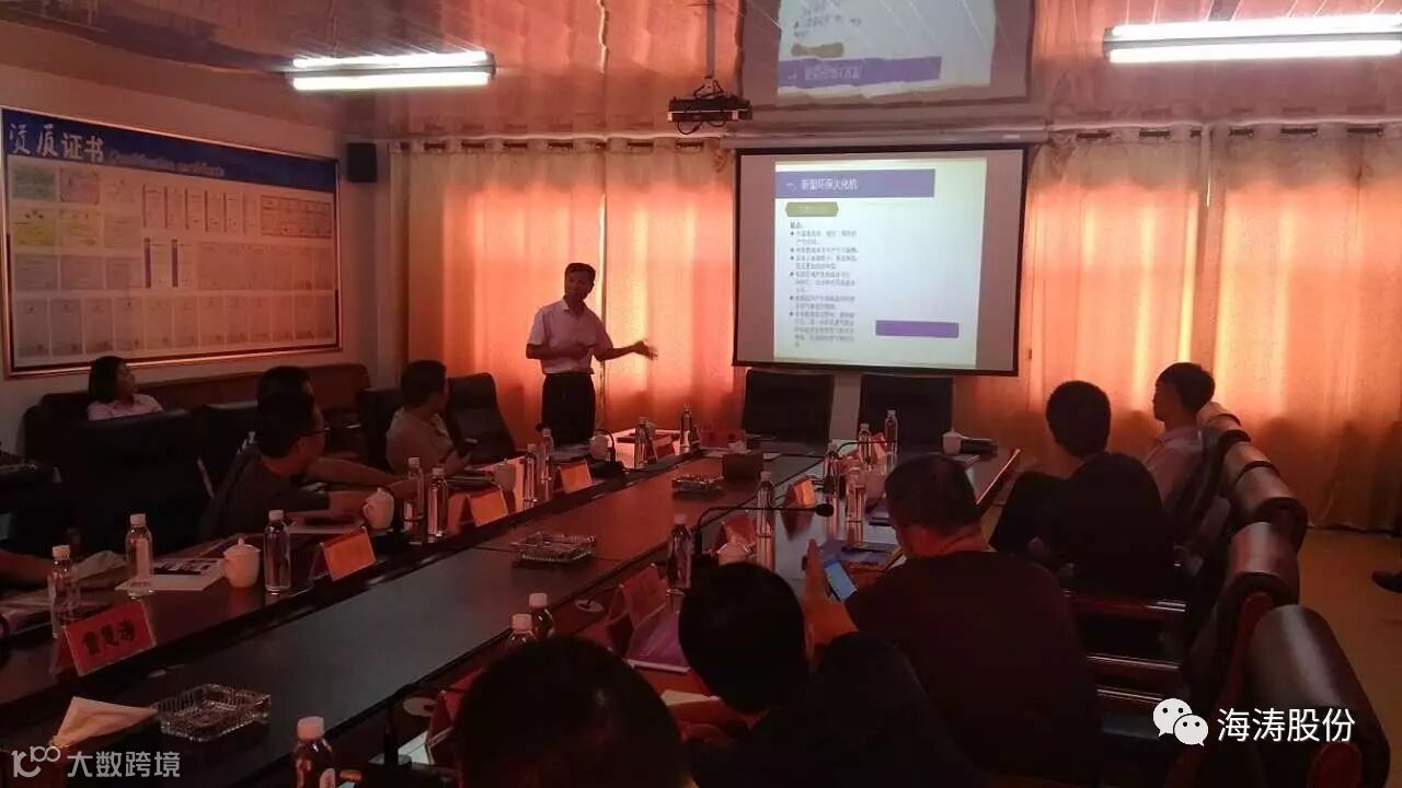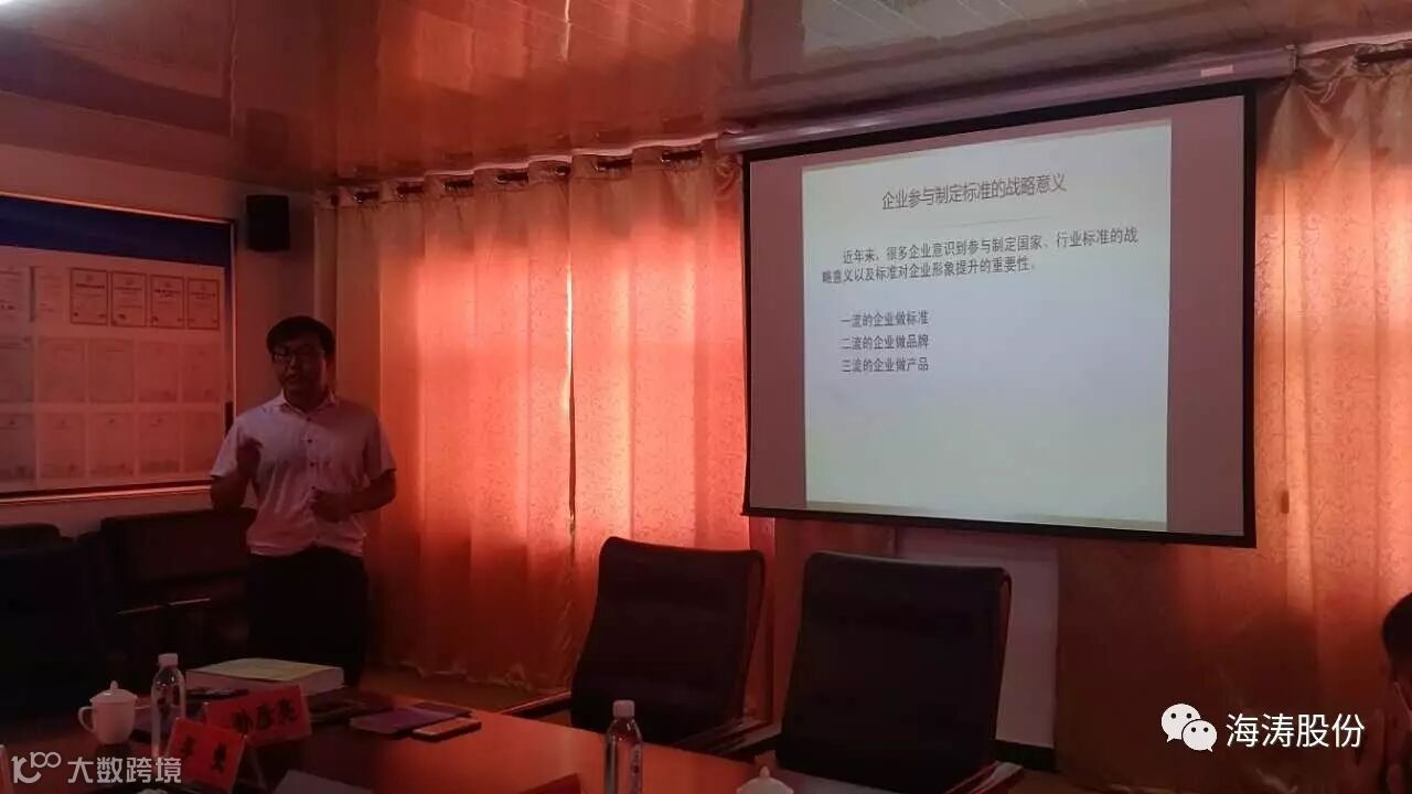 参观厂区结束后,在海涛股份小会议室展开交流会议。首先由HKC科研所所长孙彦亮进行企业参与制定标准汇报。