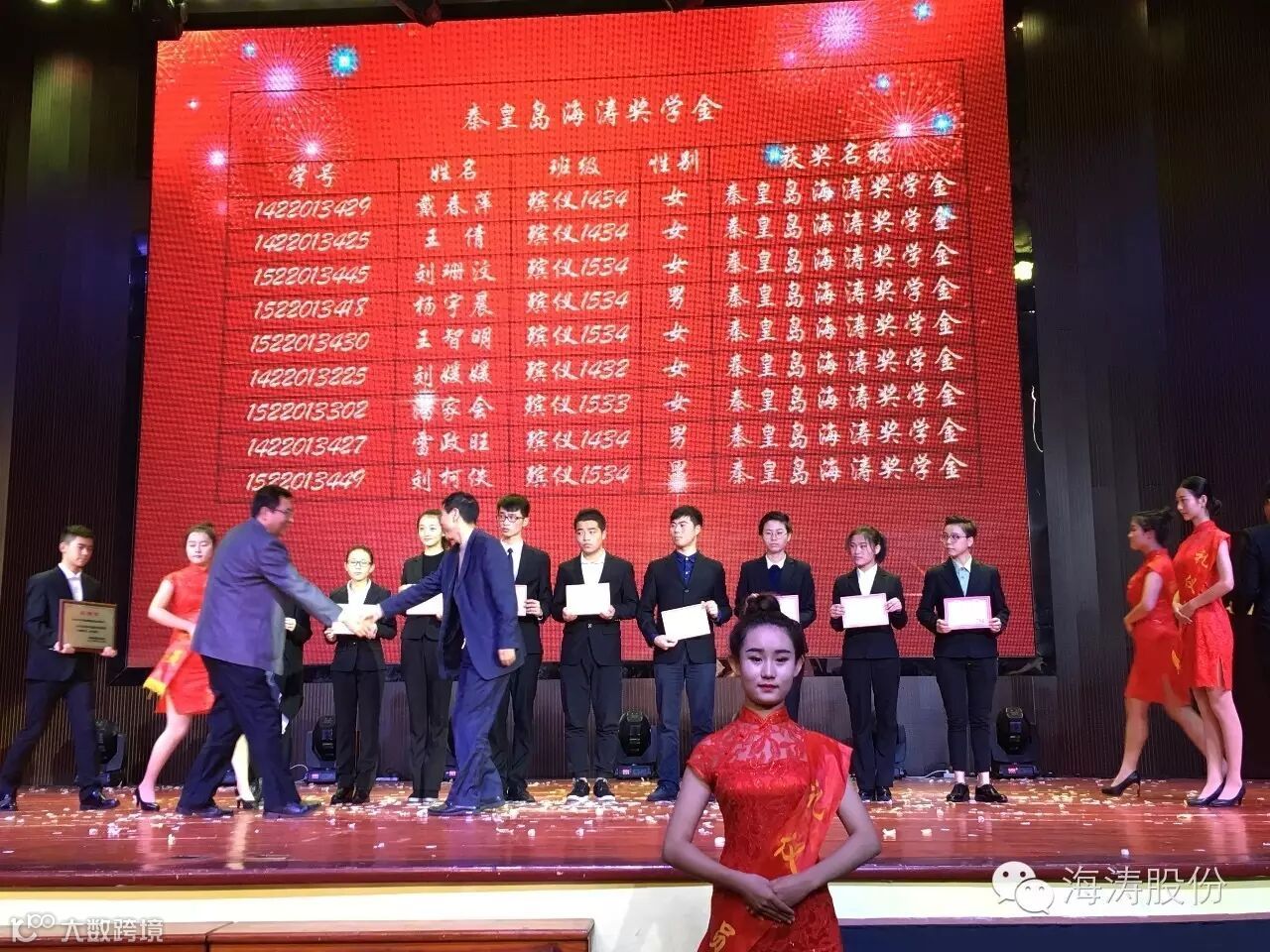 图为:孙智勇董事长为获奖学生颁发证书