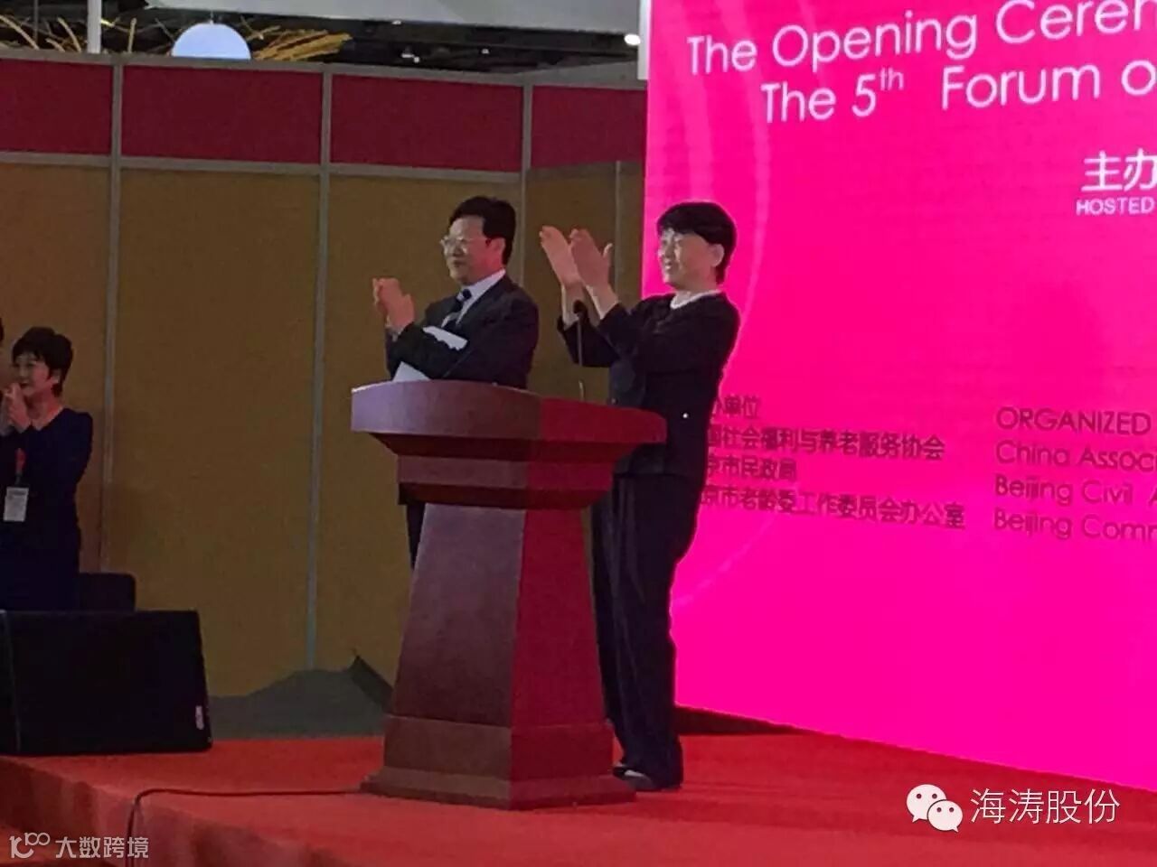 参加开幕式的有第十一届全国政协副主席张梅颖、民政部副部长高晓兵、北京市政府副市长王宁、国际老龄联合会国际关系部部长Gregory Ross Shaw等领导和各地来宾,海涛股份公司董事长孙智勇、市场运营部经理李曼受邀参加开幕式.