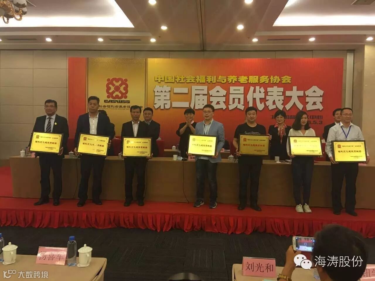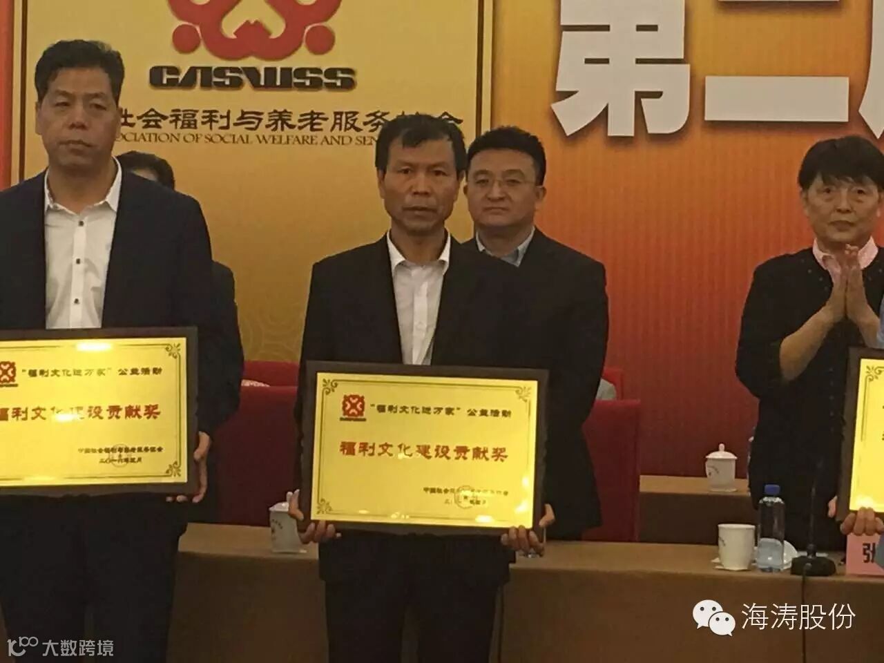 海涛股份公司董事长孙智勇先生非常关心支持中国养老服务业,热情参与本次活动,得到了国家领导们与社会人士的敬佩,全国政协副主席张梅颖等领导授予海涛股份公司“福利文化进万家”公益活动,福利文化建设贡献奖!