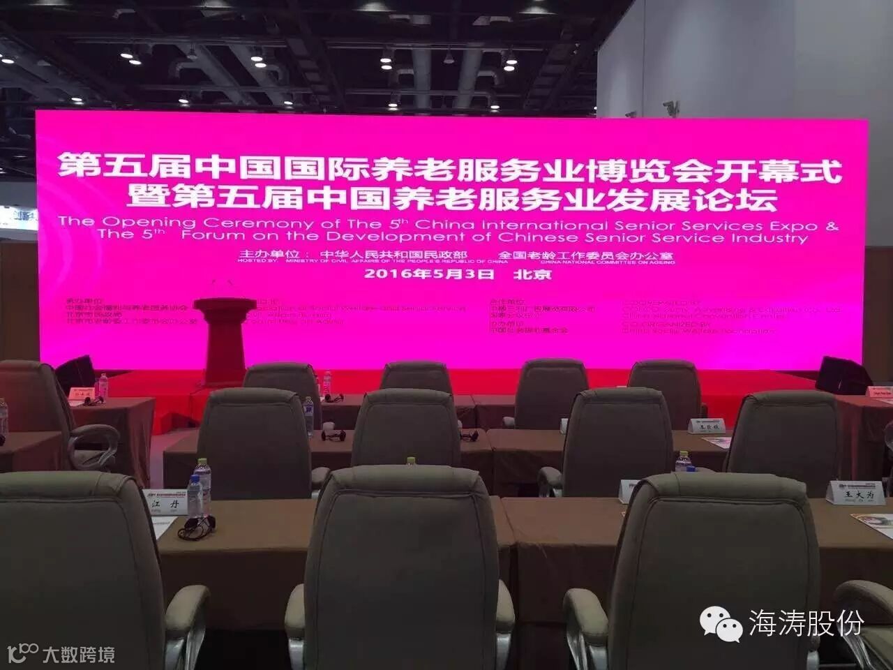 2016年5月3日上午9:30分,由民政部、全国老龄工作委员会办公室主办,中国社会福利与养老服务协会、北京市民政局和北京市老龄工作委员会办公室联合承办的“第五届中国国际养老服务业博览会”在北京国家会议中心隆重开幕!