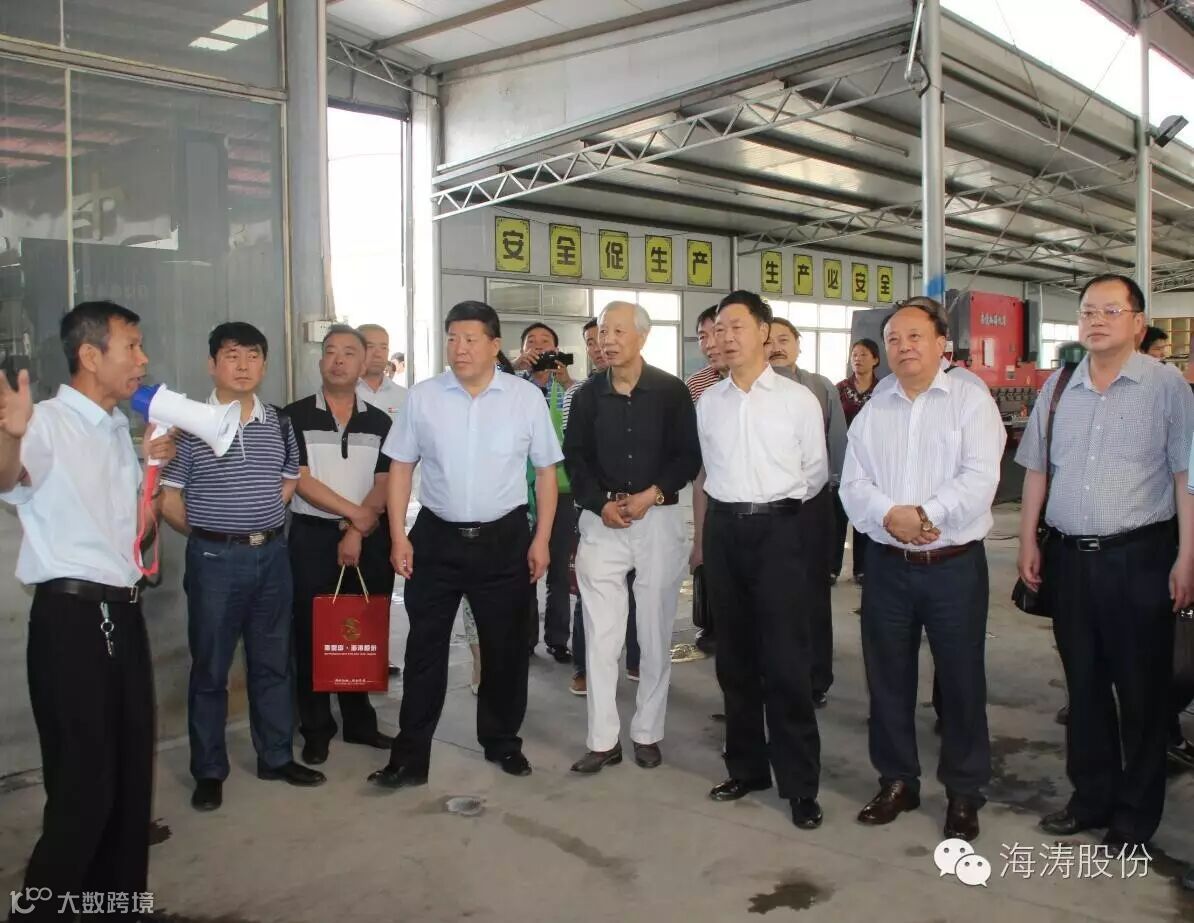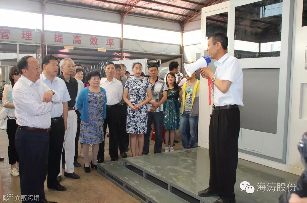 图为:海涛股份董事长孙智勇陪同参会领导参观公司