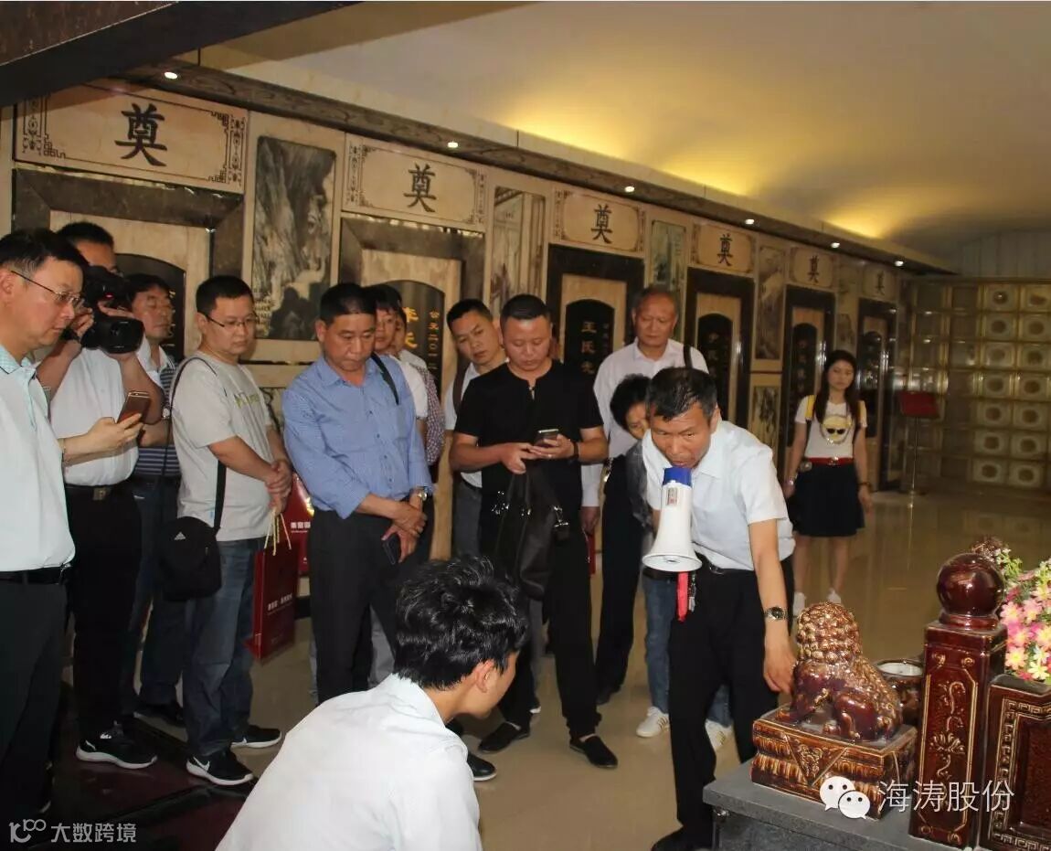 2016年5月30日,“绿色殡葬基层调研-贵州行”工作总结及实地考察座谈会在秦皇岛海涛万福环保设备股份有限公司隆重召开。首先由海涛股份董事长孙智勇陪同参会领导参观了公司厂区、生产车间、实验室以及展厅等部门。海涛股份公司的独创产品引起了领导们的兴趣,特别是遗物焚烧炉、十二生肖祭祀园以及室内公墓,领导们纷纷向公司董事长孙智勇询问各种产品的功能及市场前景,同时对海涛股份的创新能力做出了充分的肯定。