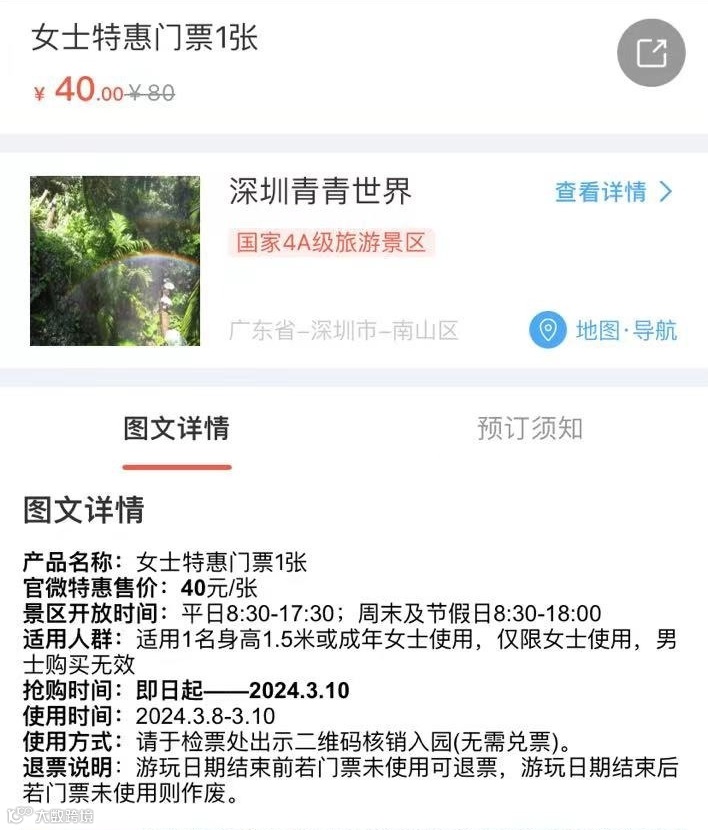 女生专享40元抢80元·青青世界“女士全天票”,3月8日-3月10日期间有效,可任选一天入园,限入园1次。穿越侏罗纪,与恐龙同行;打卡神秘雨林,邂逅幸运彩虹。