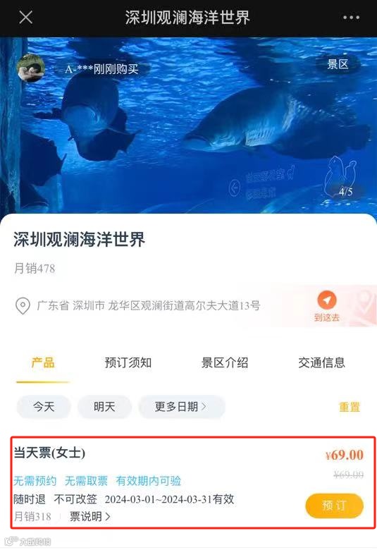 三月特别“约惠”,打卡面积10000㎡+的海底世界。69元可抢“观澜海洋世界”女士票;看遍上万种海底生物,畅享十大海洋主题&梦幻海洋剧场。