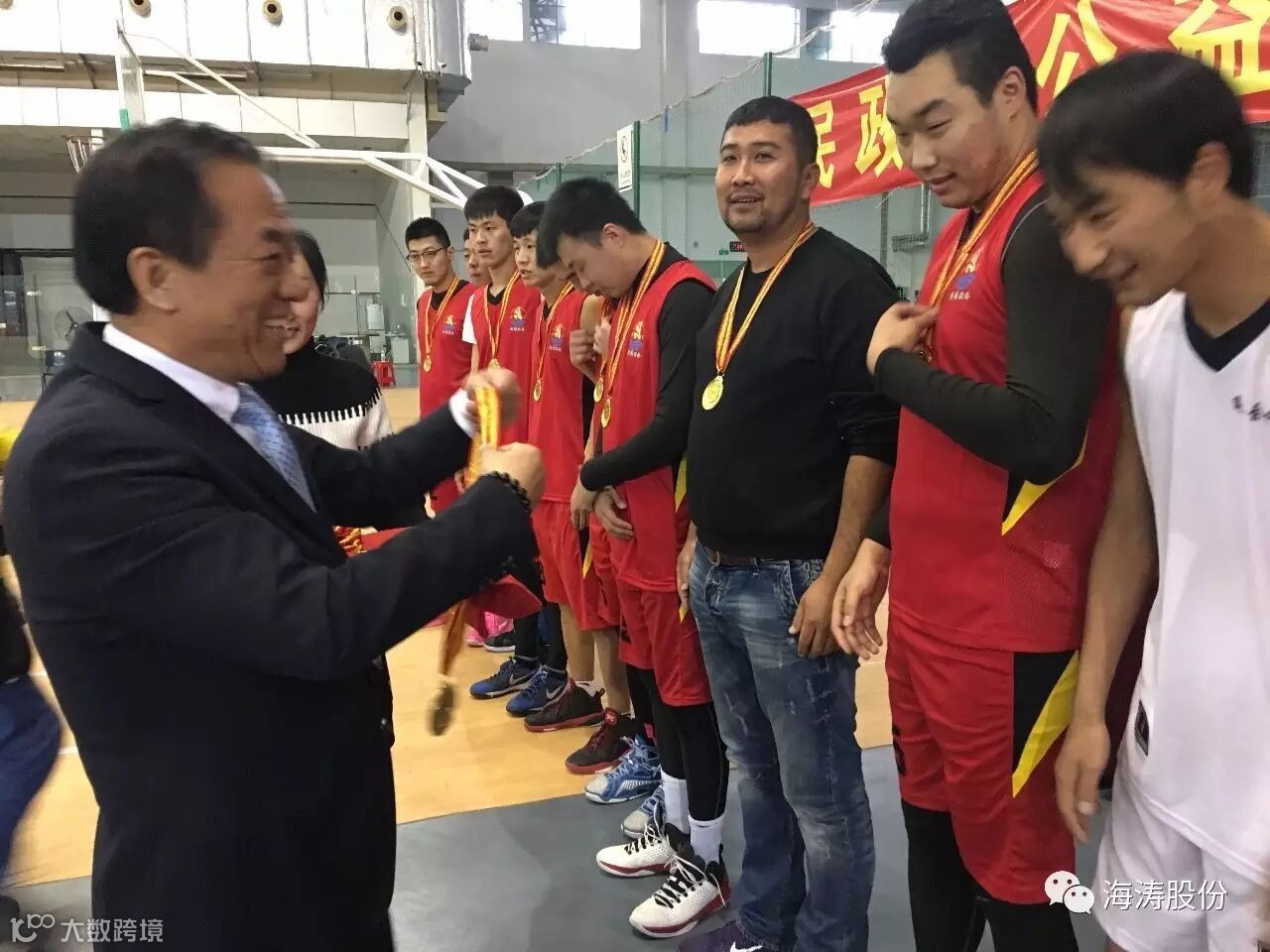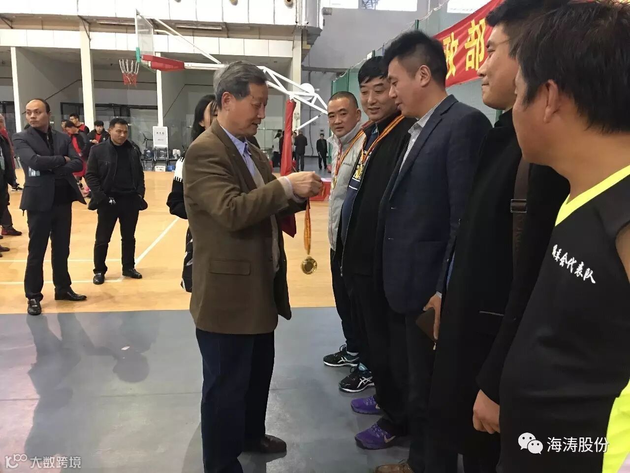 民政部原巡视员、本报特邀嘉宾张洪昌为获得冠军的海涛股份代表队颁发了奖牌、奖杯