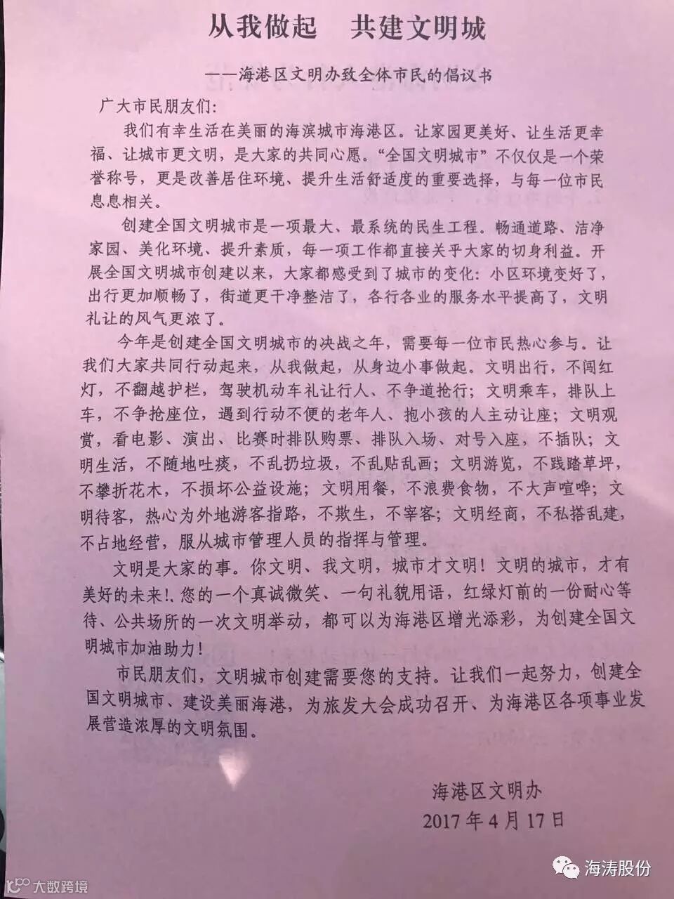 下图:“从我做起 共建文明城”发放的材料