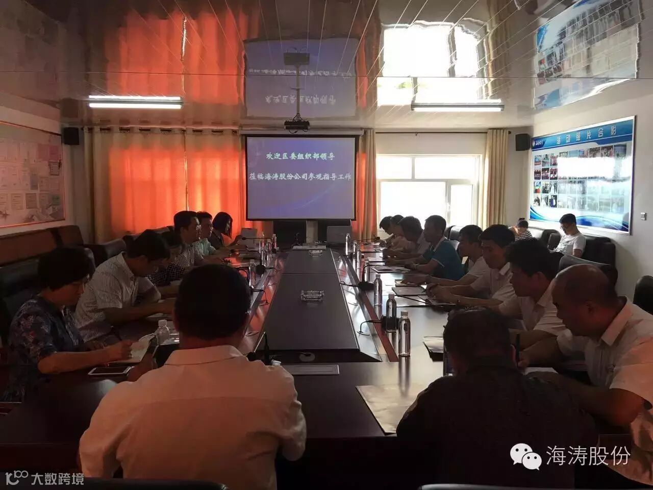 8月5日下午区委组织部和镇政府领导莅临我公司作企业发展、人才结构和需求调研,于15:30在我公司三楼会议室召开会议。海涛股份公司孙智勇董事长,公司领导班子成员、环节干部等成员出席了本次会议。