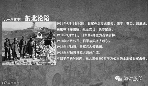 1931年9月18日夜,在日本关东军安排下,铁道“守备队”炸毁沈阳柳条湖附近日本修筑的南满铁路路轨,并栽赃嫁祸于中国军队。日军以此为借口,炮轰沈阳北大营,是为“九一八事变”。次日,日军侵占沈阳,又陆续侵占了东北三省。1932年2月,东北全境沦陷。此后,日本在中国东北建立了伪满洲国傀儡政权,开始了对东北人民长达14年之久的奴役和殖民统治.震惊中外的“九一八事变”爆发,这是日本侵略中国的开始,也是全体中国人民的国耻日。我们无法忘记这样血淋淋的历史。
