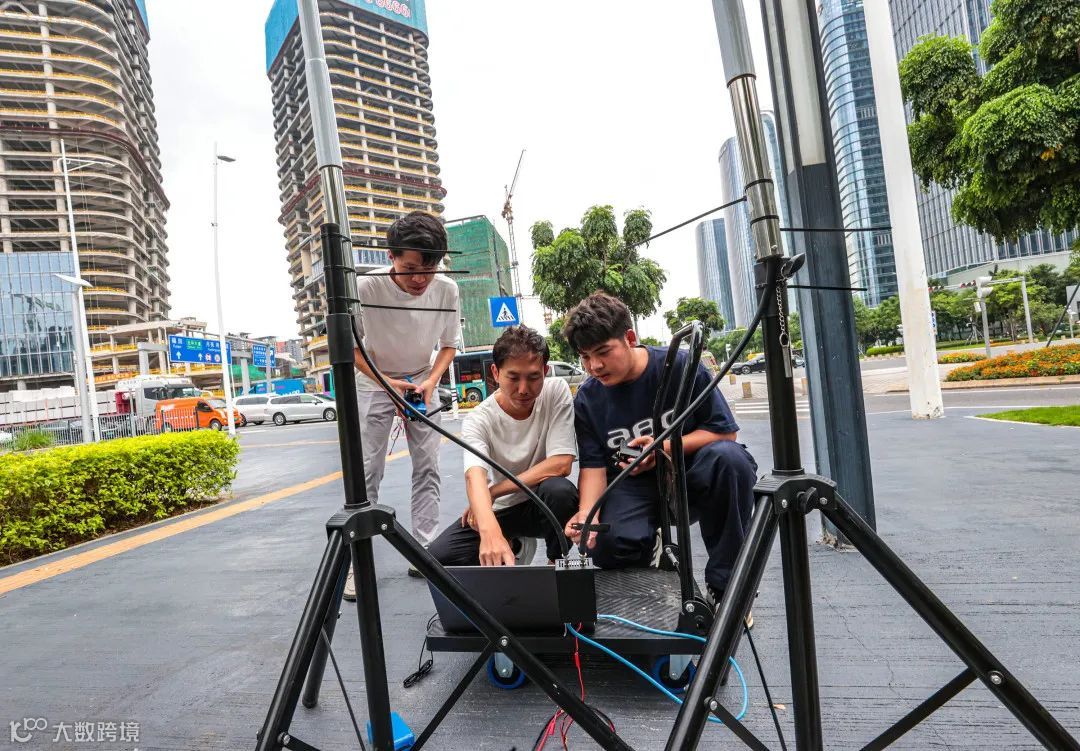 前海梦海大道,优鹰智能科技团队正在进行图像数据传输设备的测试。