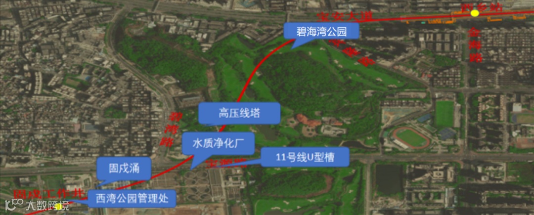 穗莞深城际机前段起于已开通的穗深城际🚏深圳机场站,终至🚏前海站,全长约15.2km,采用地下敷设。全线共设3座车站:西乡、宝安、前海。