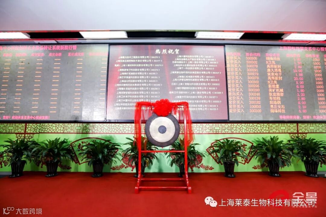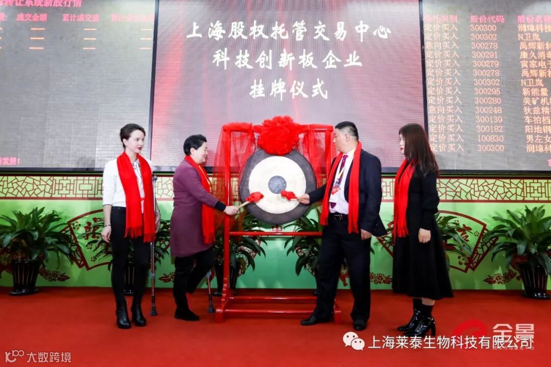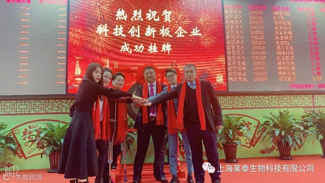 2019年12月27日,上海莱泰生物环保科技集团股份有限公司(原上海莱泰生物科技有限公司)正式登陆上海股权托管交易中心,成功挂牌“科技创新板”,开启上海莱泰集团进入资本市场的新时代。