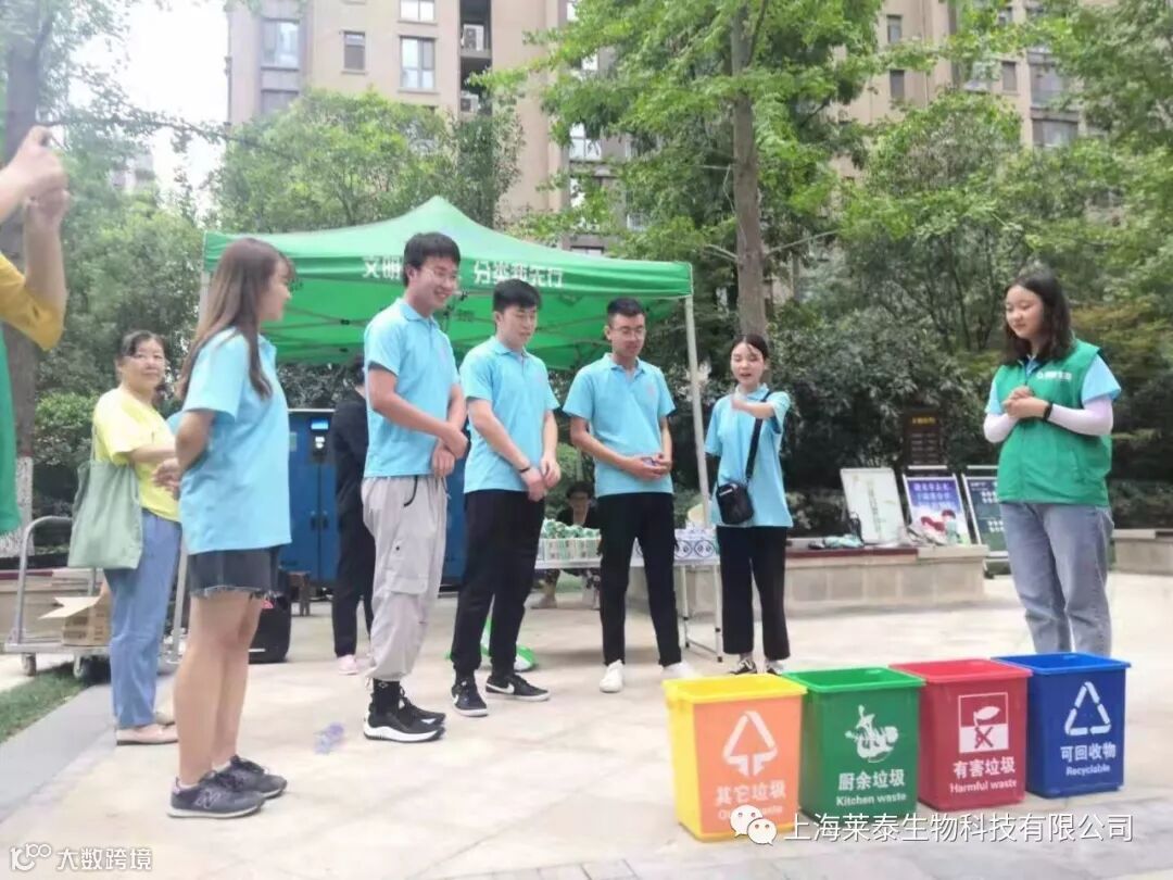上海莱泰生物科技有限公司带领郑州工程技术学院组织的“绿色社区,美丽郑州”的垃圾分类志愿者,分别前往郑州市郑东新区、惠济区所属社区开展垃圾分类宣传活动。志愿者通过入户宣讲、分发宣传单页、开展形式各异、有特色、接地气的面对面宣传交流。