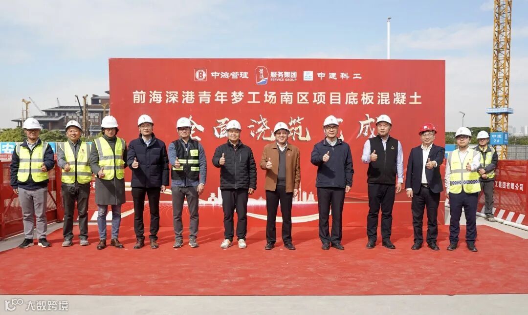 冬日阳光温暖人心,深圳前海生机勃勃。12月26日上午,前海深港青年梦工场南区项目底板混凝土全面浇筑完成仪式在项目现场顺利开展,标志着项目底板混凝土全面浇筑完成,项目建设迈入新阶段。前海服务集团相关负责人、中海管理高级副总经理韩春麟、深圳公司总经理孟志鹏、中建科工集团深圳公司总经理张斌等参加活动。