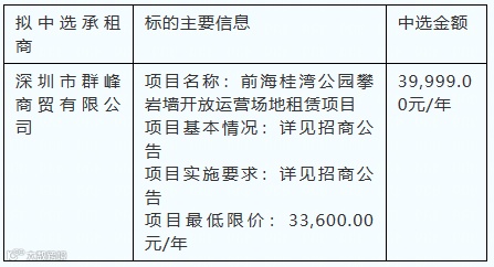 前海桂湾公园攀岩墙开放运营场地租赁项目
