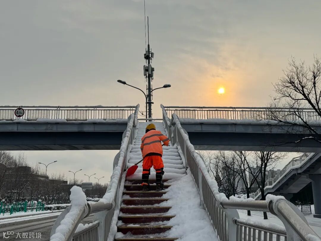 考虑到夜间作业可能影响周边居民休息,我们全程严格执行“静音作业”模式,在保障除雪进度的同时,最大限度减少对居民生活的干扰。从降雪初期的基础清雪,到后续的全员攻坚,全体人员整夜无休、坚守一线,最终重点区域除雪任务比其他路段提早完成,既守好道路畅通“硬防线”,也传递城市服务“软温度”。