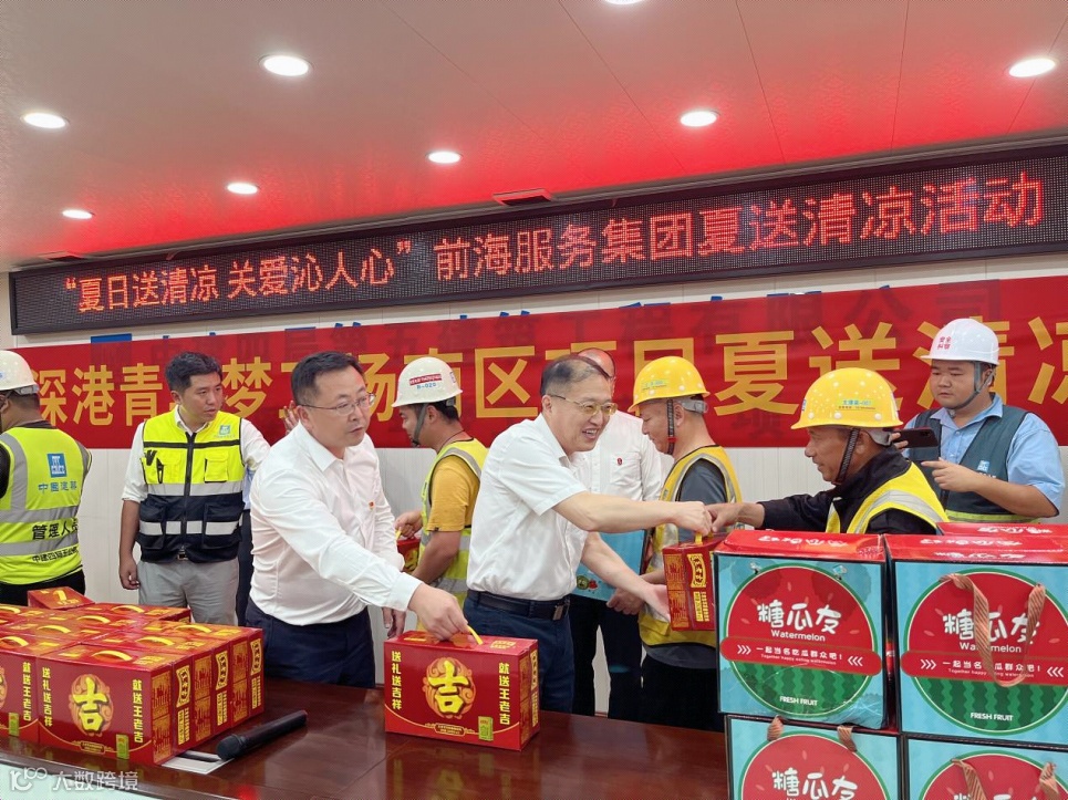 自5月底以来,深圳市连续多日出现35℃以上的高温天气。为防止炎热夏日高温中暑,确保夏日期间安全生产稳步推进,6月1日下午,服务集团领导赴梦工场南区、梦工场北区二期项目开展送清凉活动。