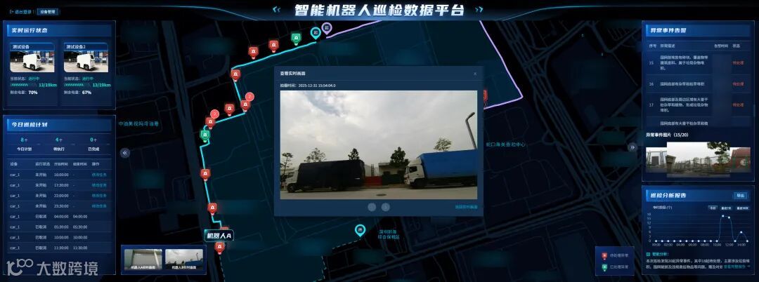 更前沿的是“魔方无人车智能巡检方案”,该系统以AI为“大脑”,无人车为“手脚”,实现巡检任务自动执行、异常自动识别、报告自动生成、处置闭环推送。该系统已在前海综保区上线,预计节约50%人工巡检成本,推动安防运维迈入“人机协同”新时代。
