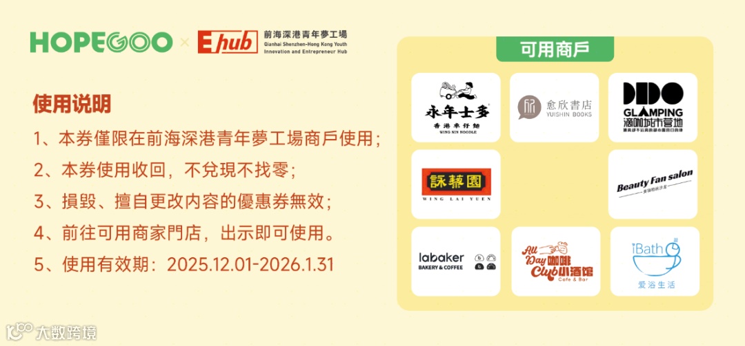 消费券仅限前海青年梦工场北区内指定商家使用。