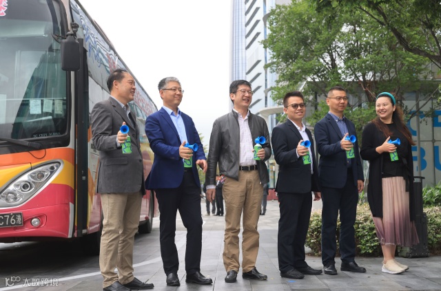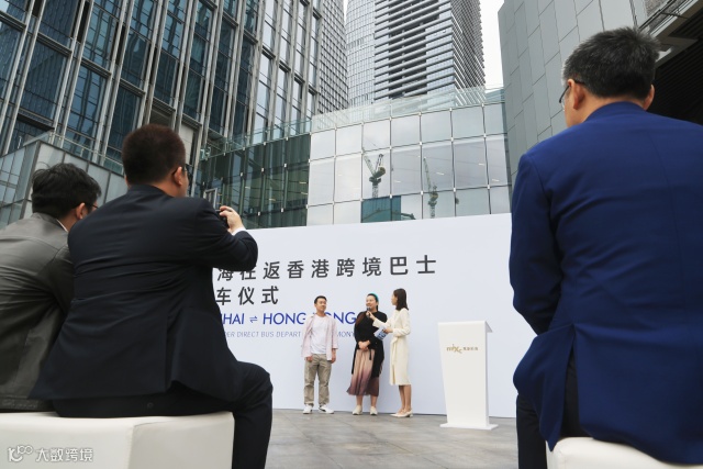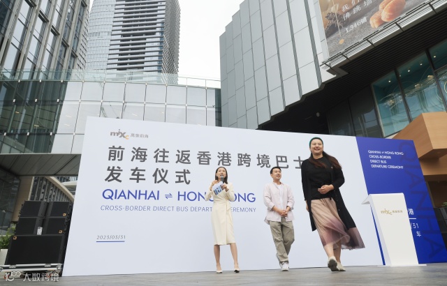3月31日上午10点19分,在深圳万象前海东侧广场,前海往返香港首辆跨境巴士正式发车。