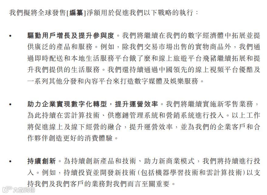 据招股书披露,本次IPO所募资金主要用于驱动用户增长及提升参与度。将继续在数字经济体中拓展并提供广泛的产品和服务,持续通过中国领先的线上视频平台优酷及一系列其他分发和内容平台来打造数字媒体及娱乐服务。继续实施新零售业务,持续在云计算技术、供应链管理系统和营销系统进行投入。