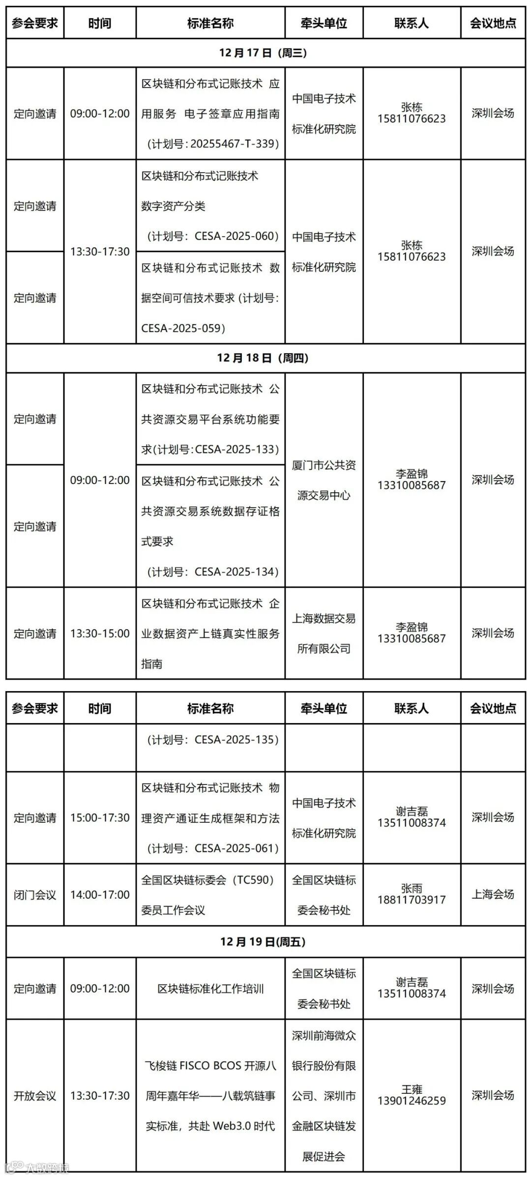 为贯彻落实《新产业标准化领航工程实施方案(2023─2035年)》,进一步推动区块链和分布式记账技术国家标准研制工作,全国区块链和分布式记账技术标准化技术委员会(SAC/TC590)拟于2025年12月17日-19日组织召开区块链国家标准会议周。现将有关事项通知如下。