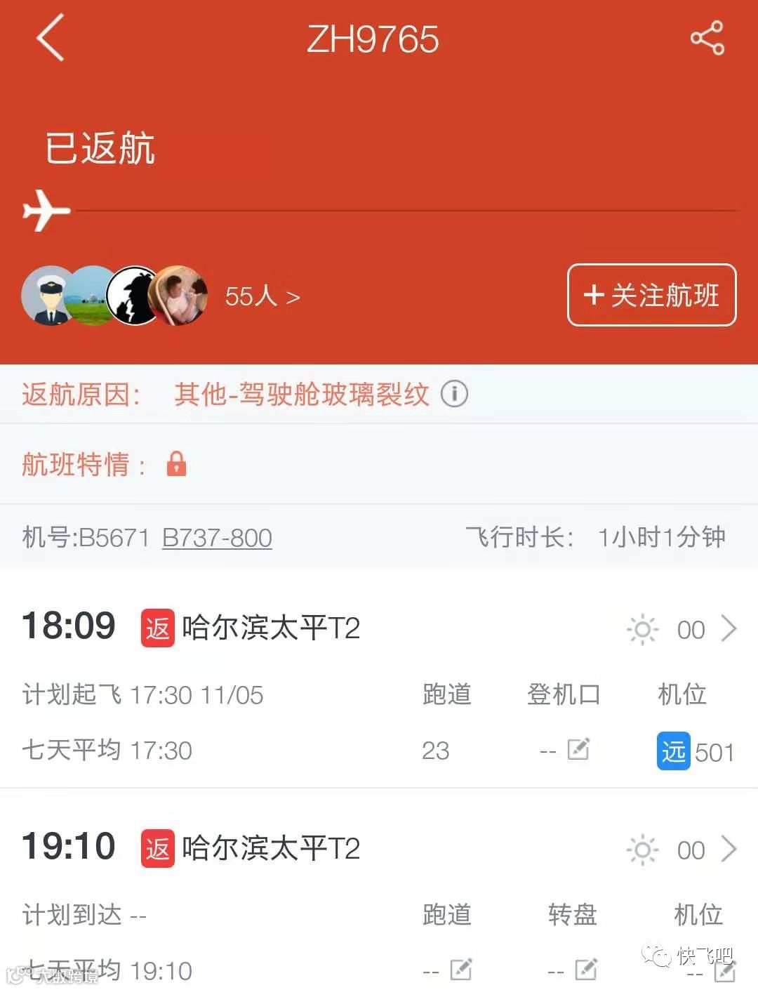 5日晚,深圳航空客服告诉记者,返航系“风挡玻璃出现裂纹”。她表示,航空公司已更换飞机执飞, 于21:27分飞机更换为B7750↓↓