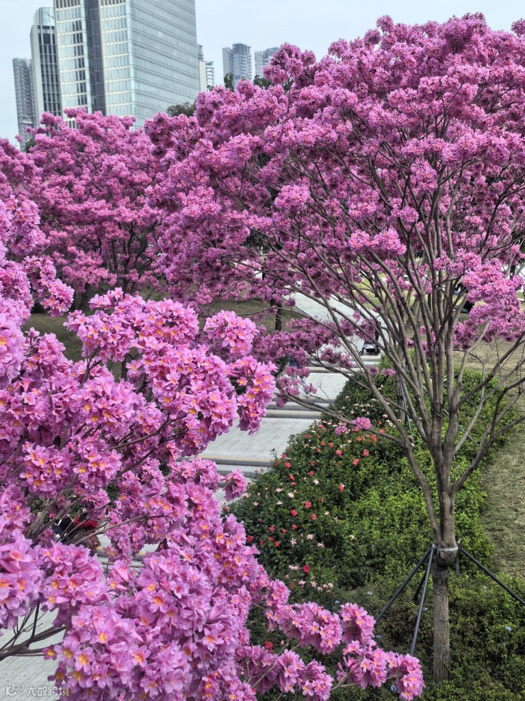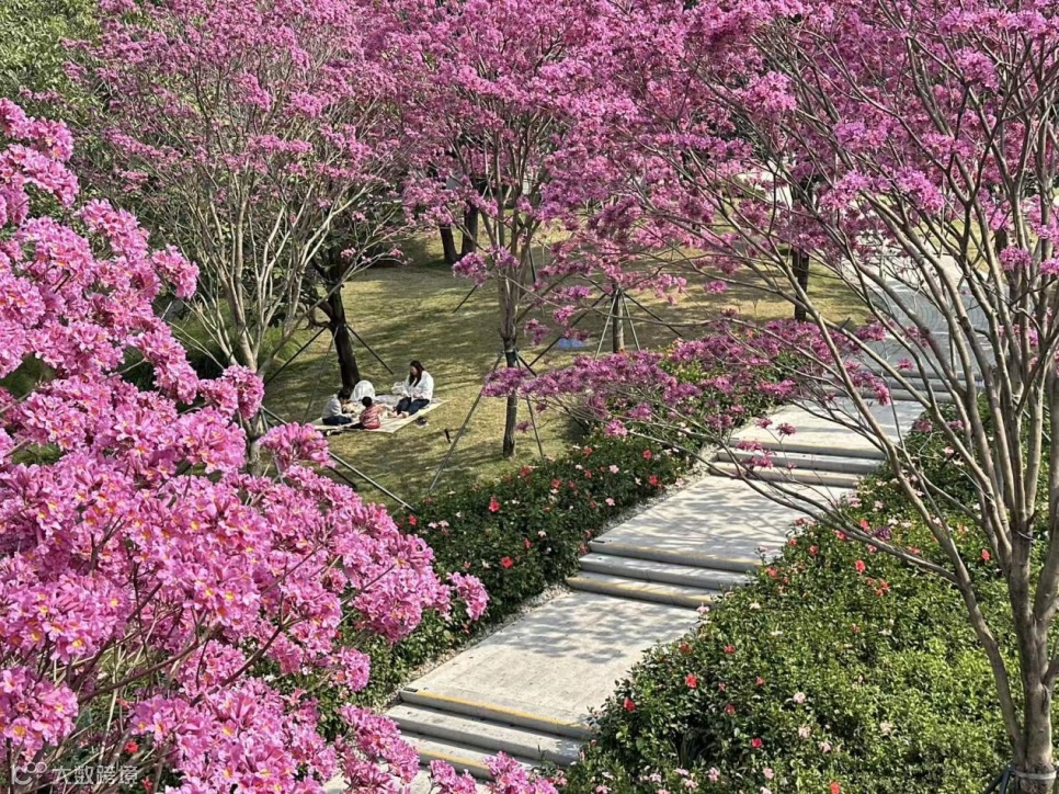 这个冬天,如果你在深圳,不妨来前海桂湾公园走走。看一看这紫色云霞,听一听这万盏紫铃,感受这座城市冬日里最柔软的诗意。春天尚在途中,而这里的紫花风铃木,早已将浪漫撒满了枝头。