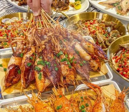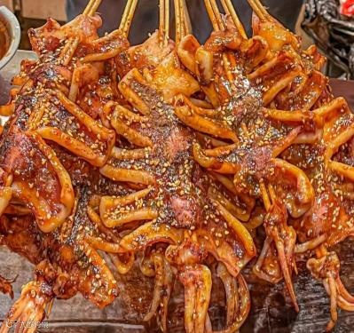 “晚饭七分饱,三分留给烧烤!”滋滋飘香的火爆大鱿鱼、秘制蘸料的烧鸟居酒屋、麻辣鲜香的卤味钵钵鸡……十几种香辣过瘾的特色小吃!简直是重口味爱好者的天堂!