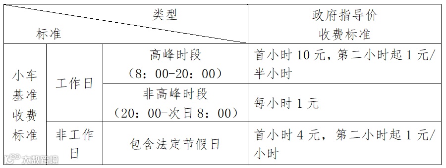 3、上述收费标准以“小时”或者“半小时”为计费单位连续计算停放时间,不足一个计费单位的按一个计费单位计算。对停放时间跨越高峰时段与非高峰时段或工作日与非工作日的车辆,收费按各时段停放时间分别计算再加总;