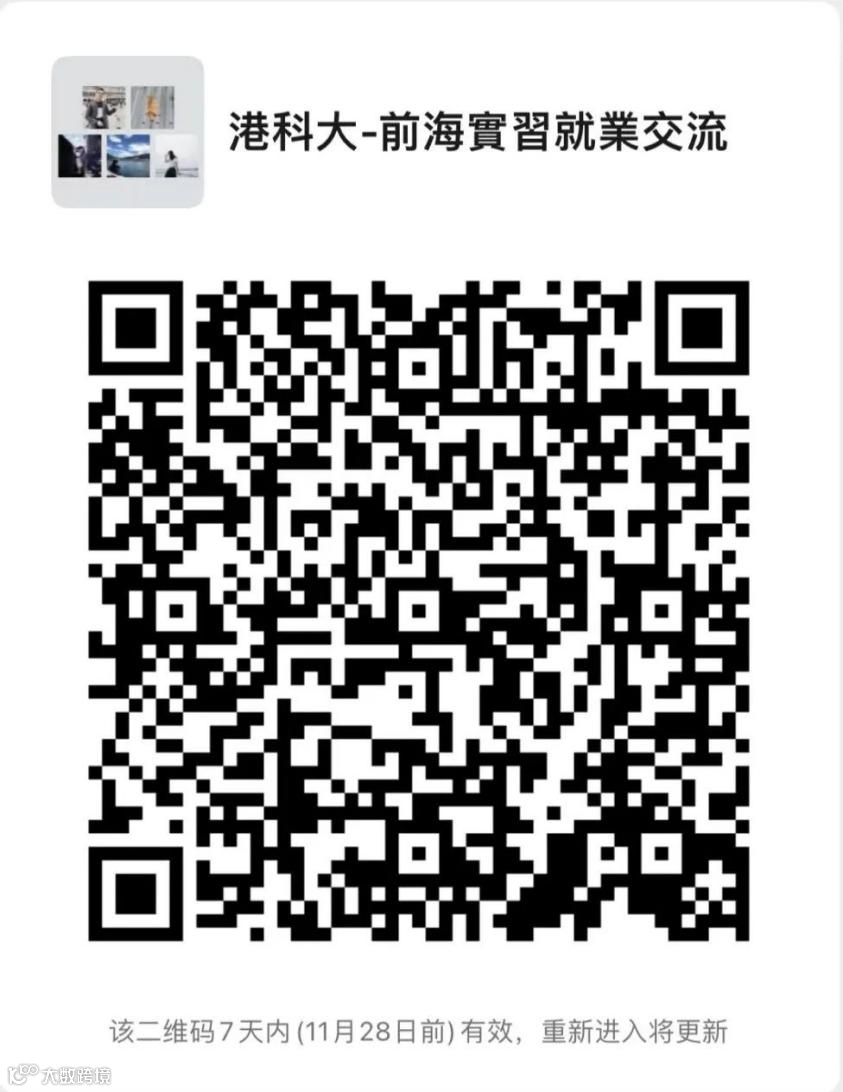 咨询交流群:如有关于此次活动或相关企业的疑问,都可加入【港科大-前海实习就业交流群】进行咨询