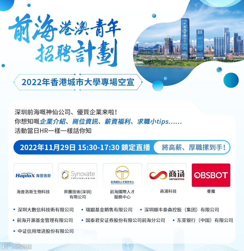 参与企业:前海港澳青年招聘计划将带来12家前海企业及优质岗位