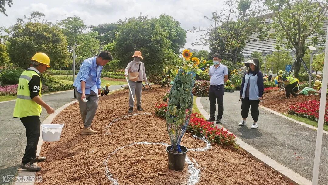本次提升改造的花境面积约1600㎡,结合前海帮扶的汕尾扶贫苗圃生产的花材,选用了缤纷明亮的橙、红、粉色等主体色花卉,局部点缀黄色、紫色等花材,中高层植被选用向日葵、百子莲、蛇鞭菊、天蓝鼠尾草、进口鸢尾、进口美人蕉、粉花夹竹桃、马利筋等植物来建立下层空间的“骨架”,再结合百日草、鼠尾草、鸡冠花等扶贫花材,填充和丰富下层空间。