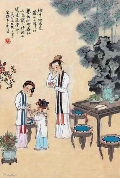 「 染红指甲」:据《燕京岁时记》:“凤仙花即透骨草,又名指甲草。五月花开之候,闺阁儿女取而捣之,以染指甲,鲜红透骨,经年乃消。”民间有在五月端午或七夕捣凤仙花染红指甲之俗。