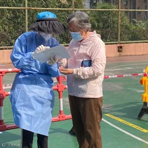 当深圳“慢”了下来,居家办公的同事纷纷到各自居住的社区踊跃报名,参与社区防疫服务工作。他们出现在封控管控区、核酸采样点、小区出入口,协助社区开展现场引导、健康码核对、核酸码验证等工作,做好全方位服务,用实际行动呵护居民健康,为守卫家园而战。全员志愿者的队伍里,他们是上有老的子女,他们是下有小的父母,他们还是刚毕业不久的孩子,但是在披上防护服带上面罩的那一刻,他们都是党的好儿女。“抗疫有我,请党放心!”