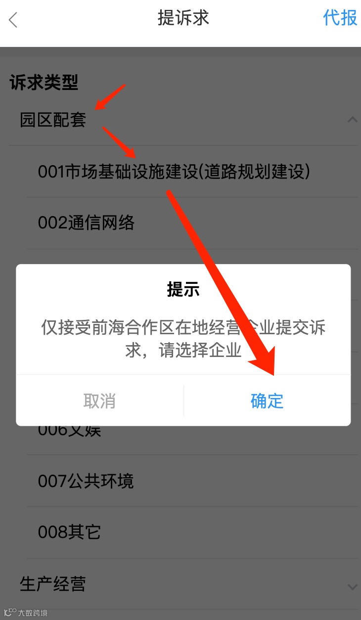 选择对应的大类诉求类型,再选择具体的小类诉求类型,前海在地经营的企业才能进行诉求提交。