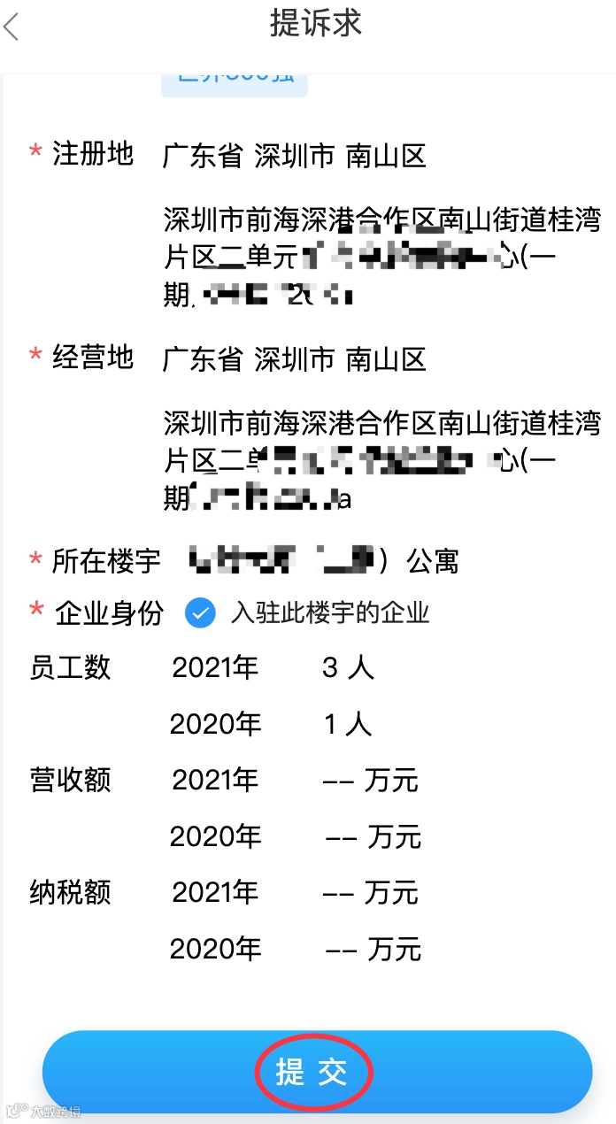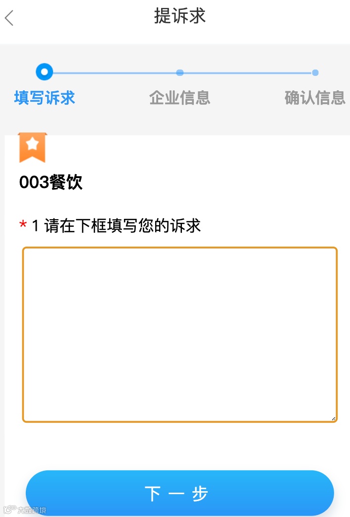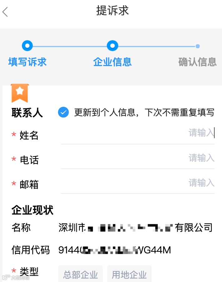 填写企业实际的诉求,然后补充完善企业信息,最后进行信息确认,确认无误后,即可提交诉求。