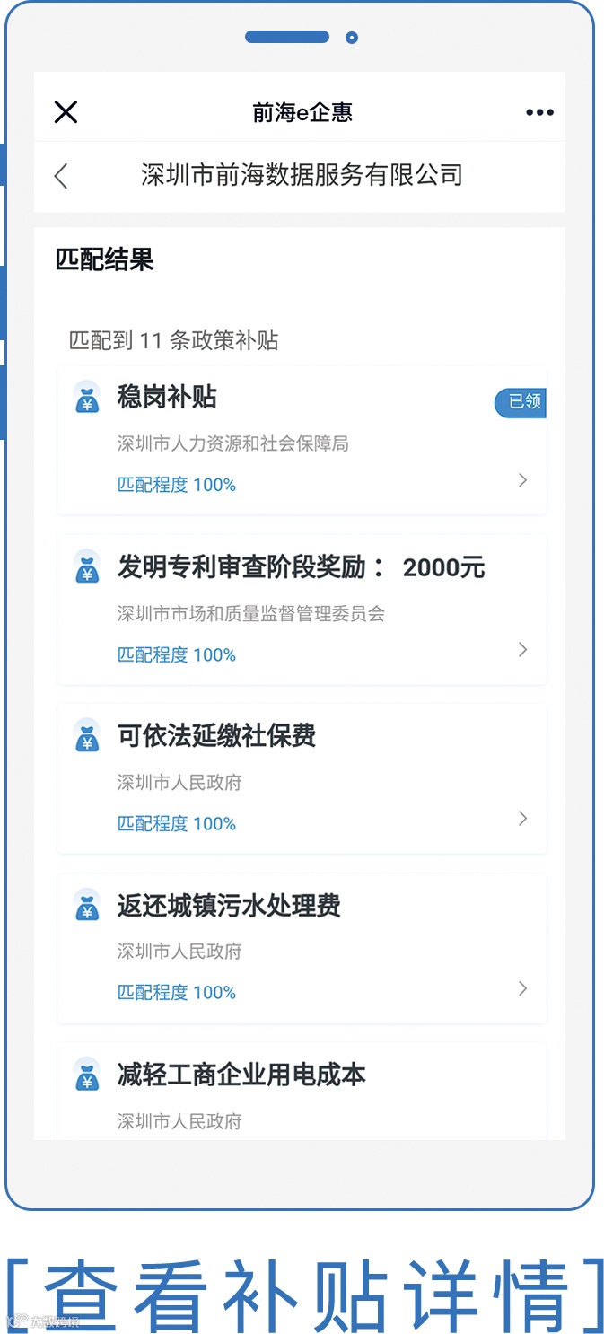 ①企业名称匹配:输入企业名称,一键匹配政策补贴