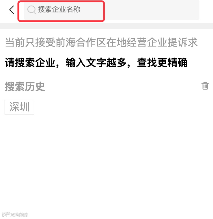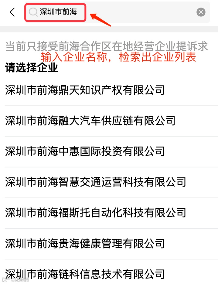 用户登录后,通过输入企业名称,然后选择对应的企业,如果列表没有显示您输入的企业,则该企业暂时没纳入到提诉求的企业名录里。