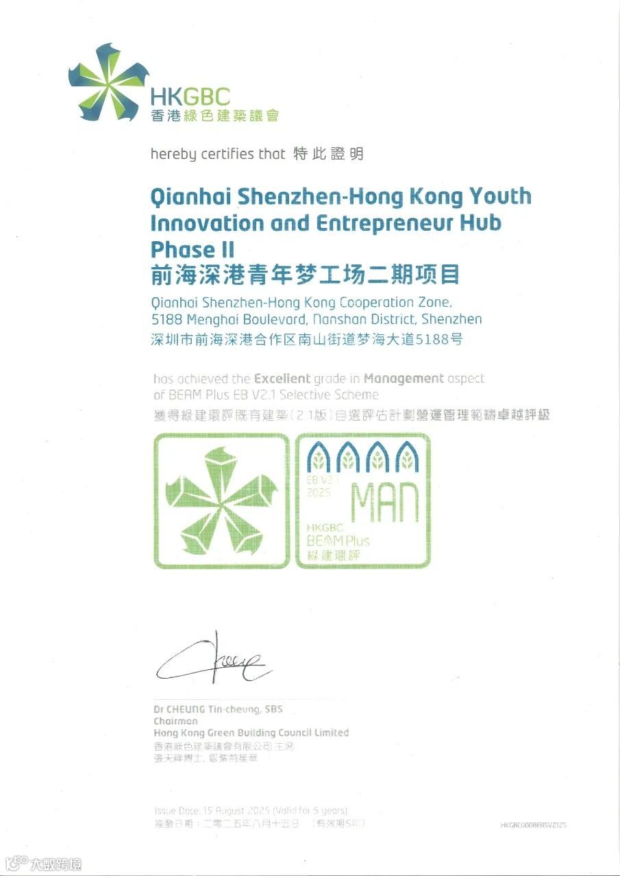 此次认证标志着深港在城市低碳发展领域实现规则机制“软联通”的实质性突破,为粤港澳大湾区构建“标准协同、技术共研”的绿色产业生态提供具有前海特色的示范样板。