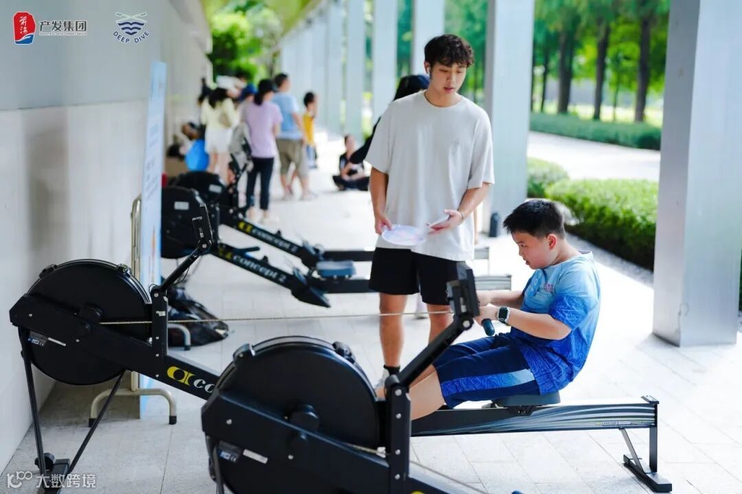 陆地活动区同样人气爆棚,两人三足、趣味投壶、划船机等项目各具特色,吸引人们排队体验。在划船机体验区前,专业教练耐心讲解动作要领,从腿部发力到手臂拉伸,细致的指导让体验者们快速掌握技巧,整齐划一的划动节奏展现出十足的活力,体验者在竞技中感受运动的快乐。