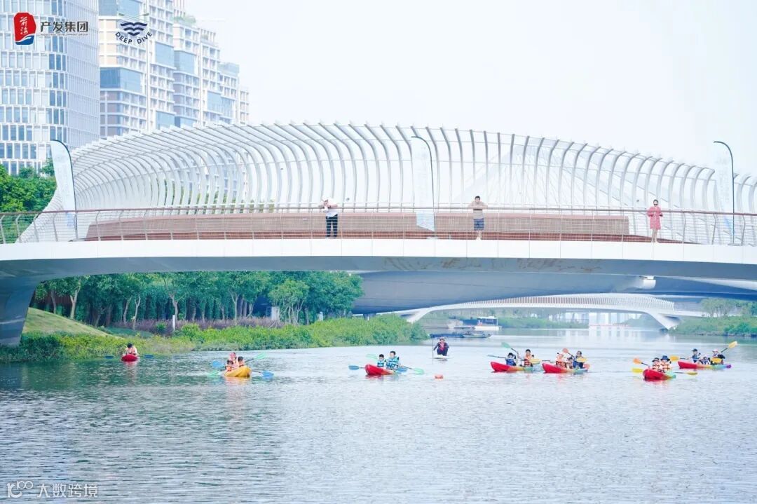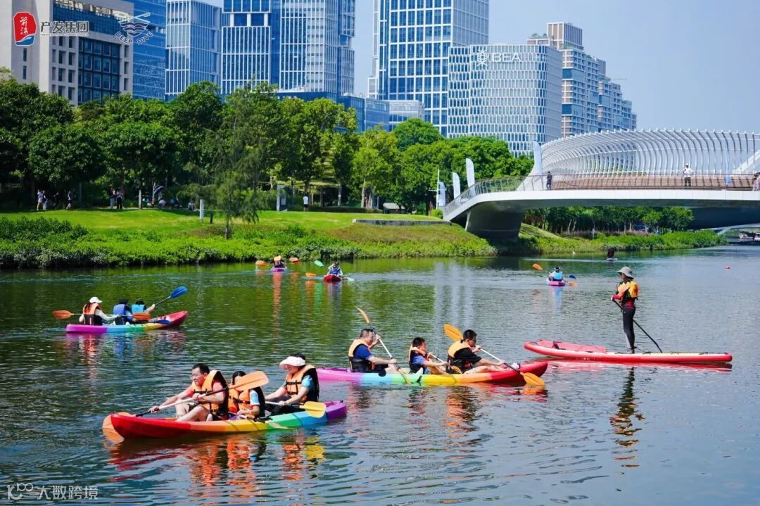 作为本次嘉年华的核心举办地,桂湾公园依托桂湾河天然水道优势,将生态景观与运动场景完美融合,展现“水上前海”风貌、宜居宜业生态环境的关键载体,其清澈河道与周边现代化建筑交相辉映,构成了“城水相融”的独特滨海风情。活动当天,桂湾公园宛如一幅动感十足的生态画卷,处处洋溢着热烈且有序的氛围,让每位参与者都能沉浸式感受前海“推窗见绿、临水而居”的宜居魅力。