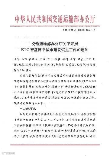 ▶成为试点单位承担交通部ETC智慧停车城市建设试点工作