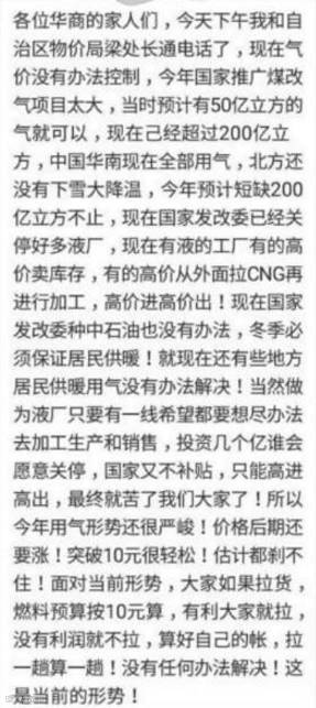 供给不足,燃气公司就得进行“限气”,在冬季到来之前,河北、山东、河南等省份已经对工业用气进行了限制,中石油方面则表示,为了应对可能到来的紧张供应,今年冬季将对河南的天然气供应减少400万立方米/天,当地燃气供应商为了保证民用燃气只得牺牲工业用户。