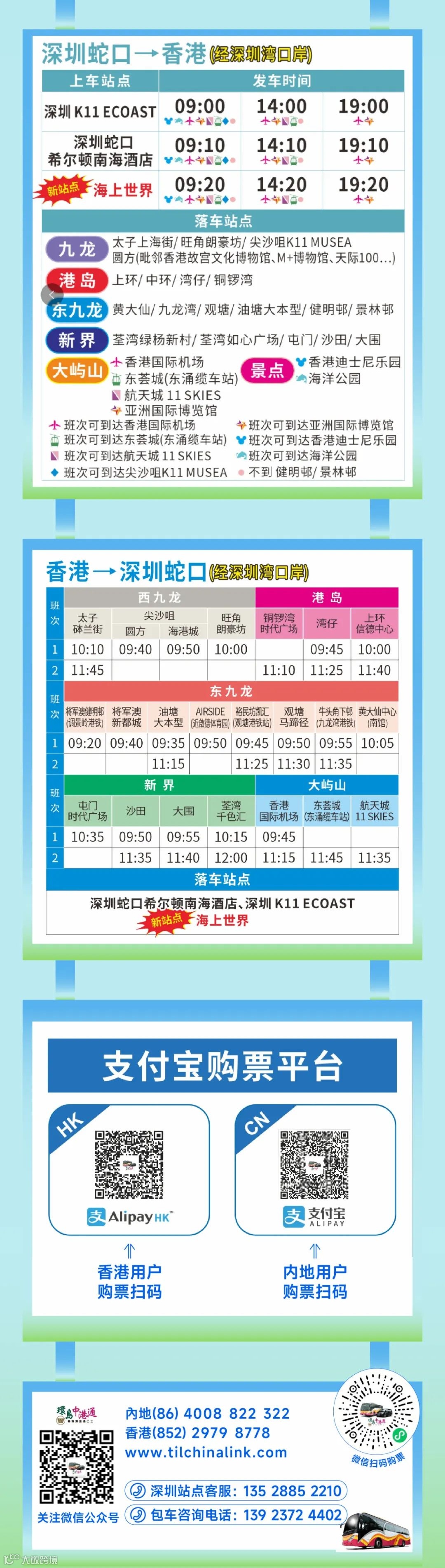 据介绍,该专线高效便捷,全程经深圳湾“通关”,直达香港市区核心站点(旺角、太子、尖沙咀、圆方、上环、中环、湾仔、铜锣湾、屯门、沙田、荃湾、大围、九龙湾、黄大仙、观塘、油塘、将军澳、香港机场、迪士尼、海洋公园、亚洲博览馆等)。