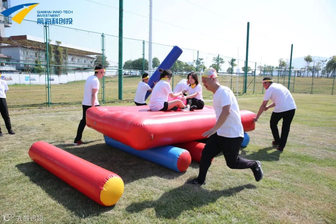 在随后的趣味运动会中,全体人员分成8支小队进行了风采展示,就迅速投入到各种比赛项目中。运动会项目设置样式新颖并且丰富有趣,极大地提高了趣味性:超级障碍接力让全体人员都参与进来;飞龙乘云项目对大家的团队协作能力提出了考验;借木移舟项目提升了队员之间的凝聚力和整体性;水果大战项目则比拼团队的比赛策略和临场应变能力;作为终极挑战的趣味碰撞项目,要求每支队伍每轮各派出1名队员参赛,在激烈的比赛碰撞和同组队员的声援加油中更加激发集体荣誉感。赛场气氛紧张、热烈、有序,比赛精彩纷呈,营造出健康向上、团结奋进的良好氛围。