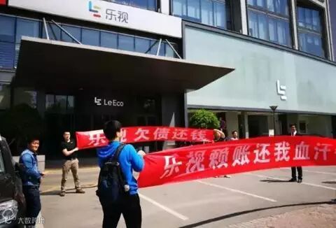 6月1日,20余加乐视手机供应商聚集在北京市朝阳区乐视大厦门口,口中高喊“乐视还钱!”